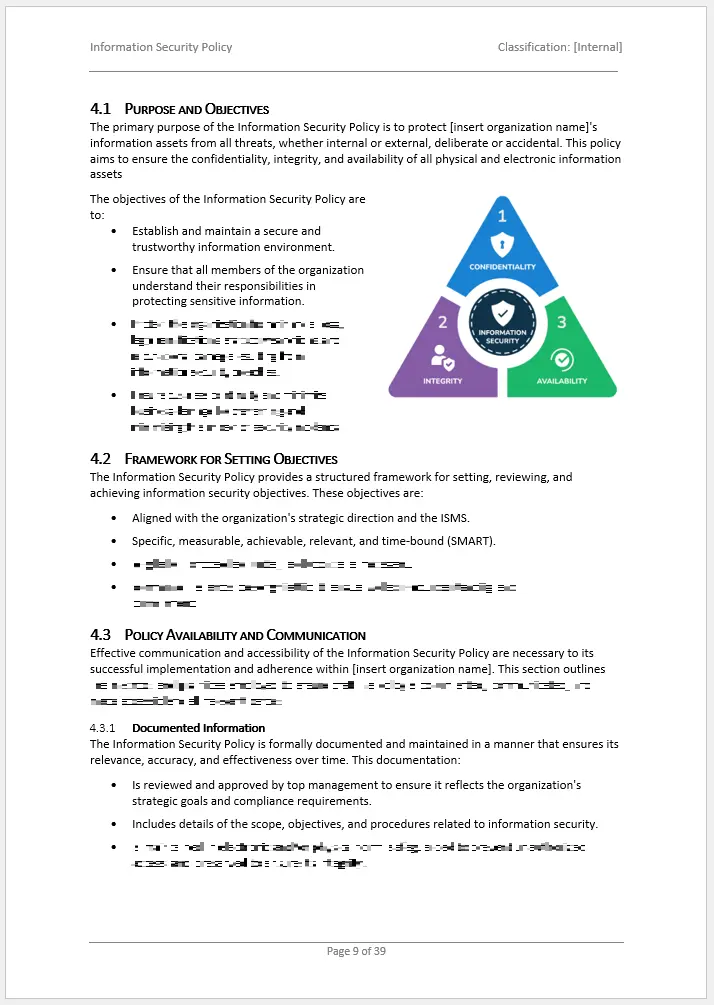 This Information Security Policy Template walks you through establishing a baseline for confidentiality, integrity, and availability—core principles at the heart of ISO 27001.