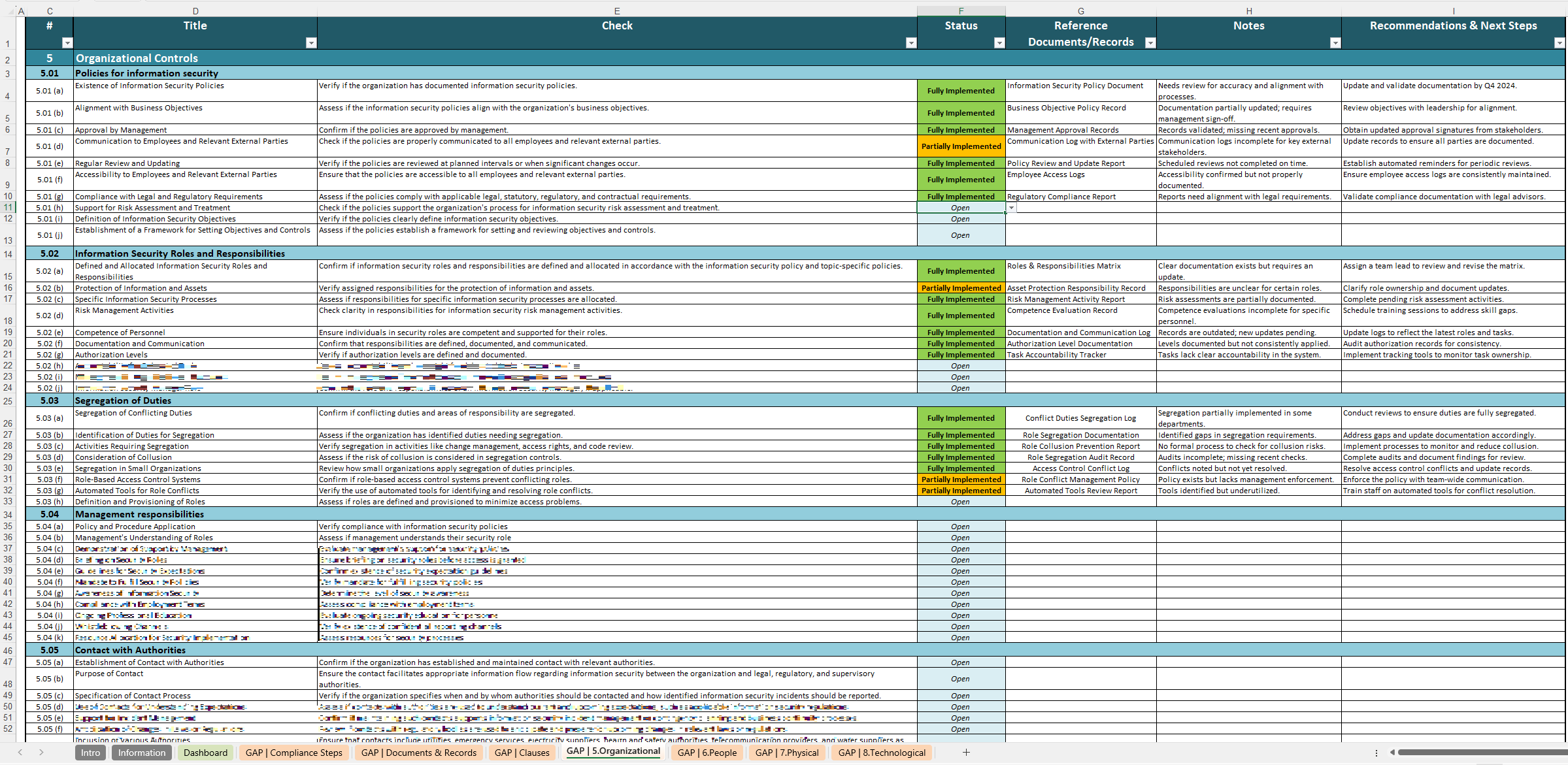 With the ISO 27001 GAP Analysis Template, the GAP identification process becomes straightforward and structured.