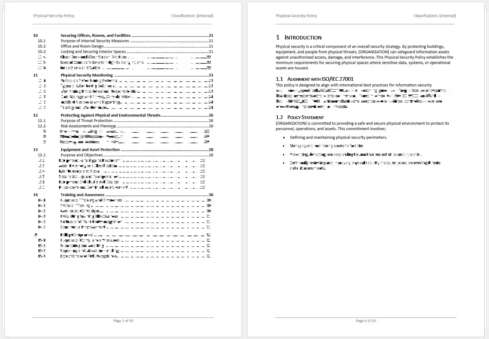 - Structure: The chapters are aligned with ISO 27001 guidelines and incorporate ISO/IEC 27002 recommendations, ensuring your policy addresses controls for physical security.