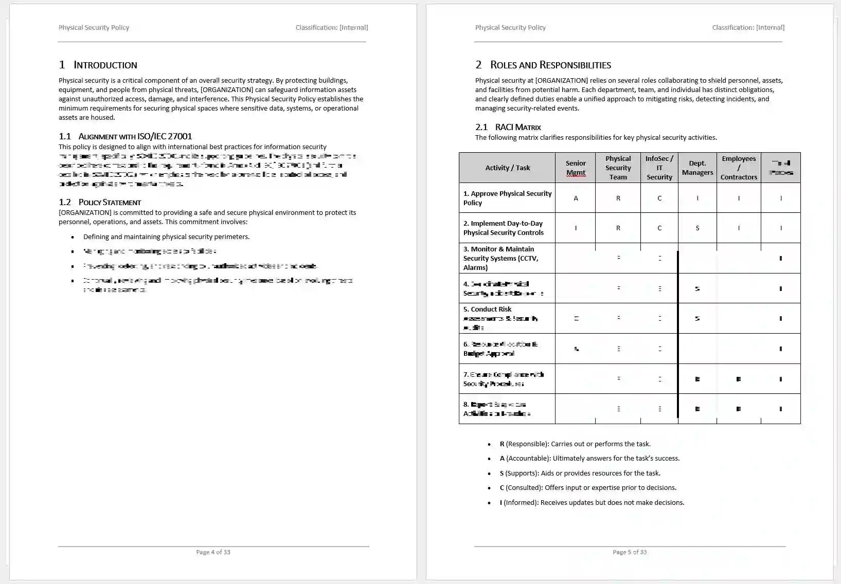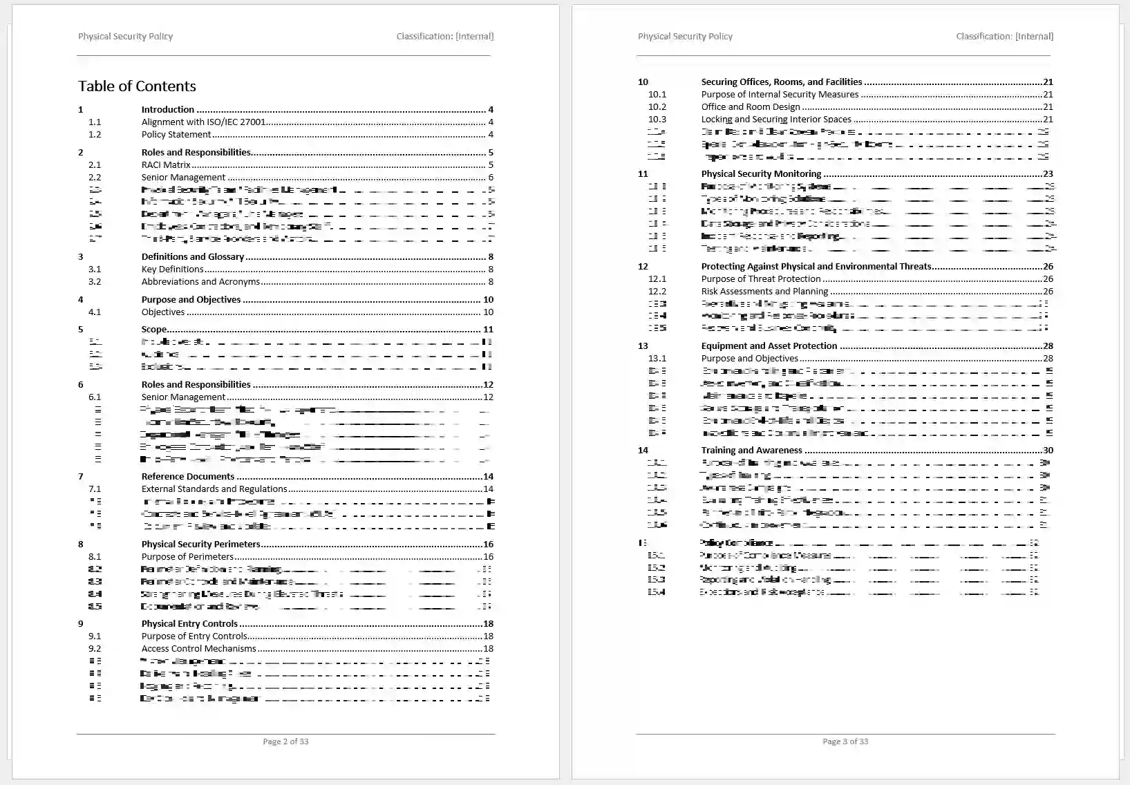 This is a structured, ISO 27001 and ISO 27002-aligned document that provides guidance on implementing physical security measures. It helps your organization meet ISO 27001 requirements.