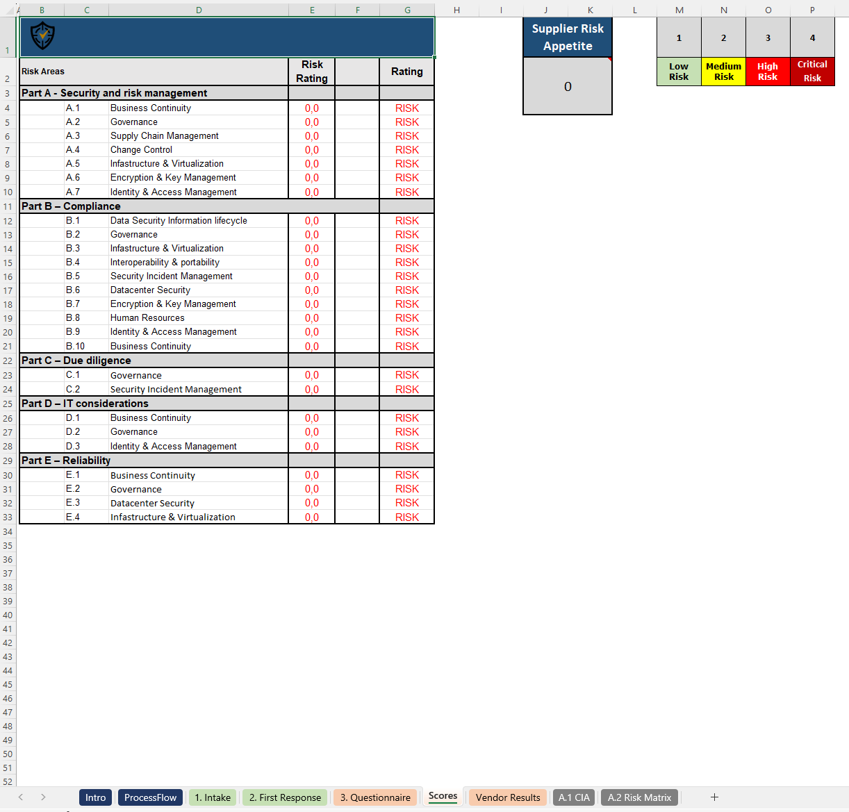 This template is a practical Excel document set up by our CISO’s to help you assess the security posture, compliance readiness, and overall reliability of your vendors.